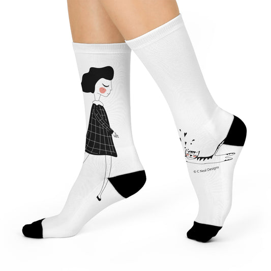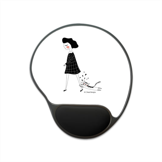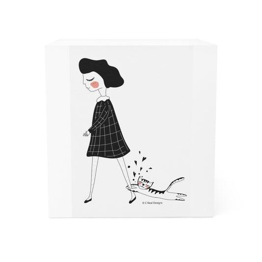 This collection (apparel, stationery, candles, home decor, personal accessories) features BoBo, the talkative little cat from the book "Auntie Pawsworth's Feline Advice Column." He clings to the leg of his "human mom" as expressions of affection float in the air.