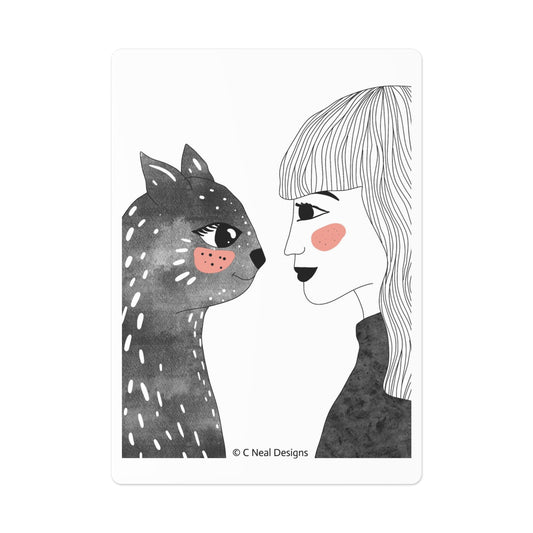 Personal accessories (playing cards, note cards, candles, phone stands, journals) featuring Sipsy, one of the charming characters from the book "Auntie Pawsworth's Feline Advice Column."